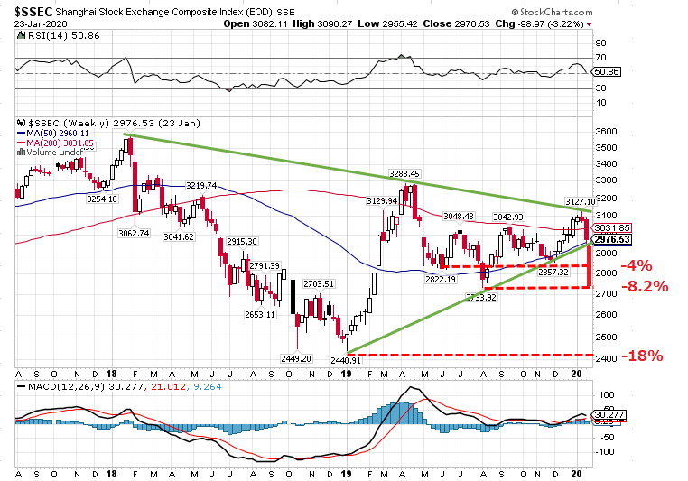 中国発の新型コロナウィルスの感染拡大を受けて、春節明けの中国株式市場は春節前と比べて7.7%安と暴落し、元ドル相場も1ドル7元台と2019年12月以来の安値をつけました。