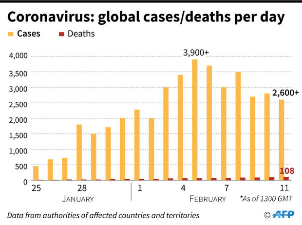 中国本土の感染者数は4万4000人を超え、死者数は1万1110人に上り、今後さらに増加することが確実ではあるものの、新規の感染者数は2月5日の3900人をピークにゆるやかに鈍化していることから、収束に向かいつつあることがわかります。