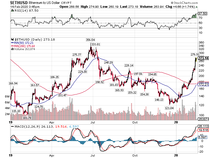 イーサリアムは19年12月に底打ちすると、わずか二カ月で+126%と大暴騰しています。