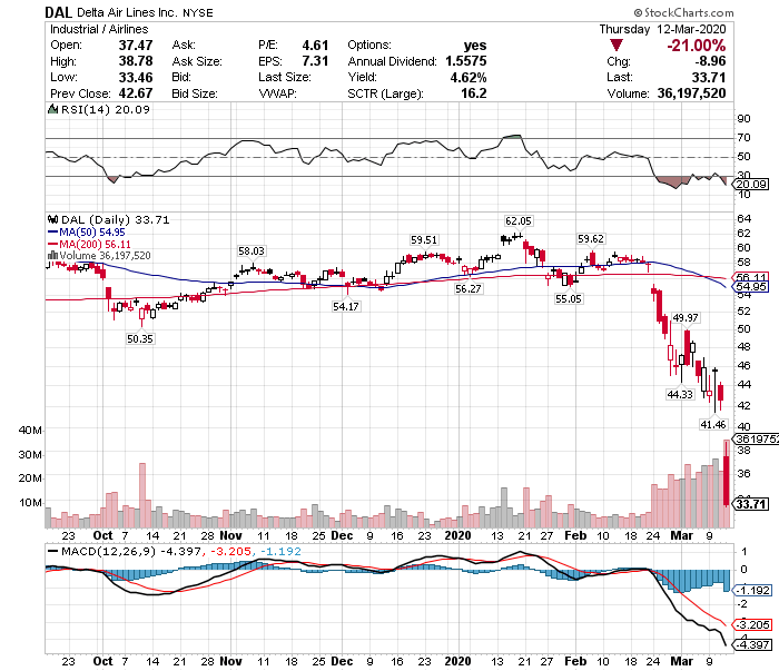著名投資家ウォーレン・バフェット氏が保有するデルタ航空(DAL)は直近の高値から45.7%安と大暴落しており、配当利回りは4.62%に達しています。