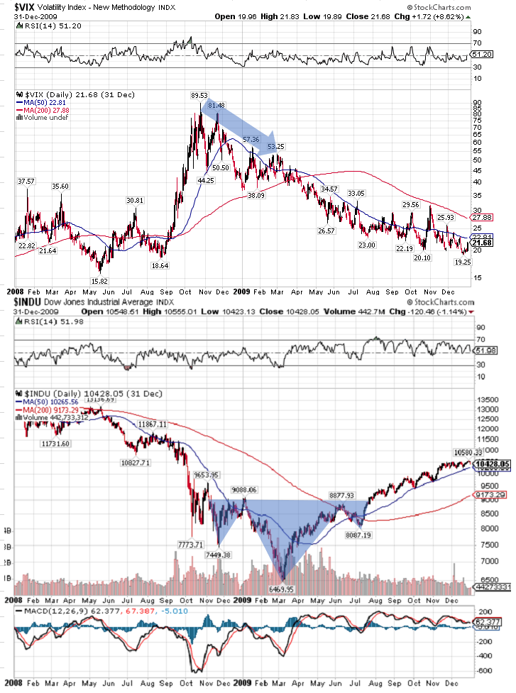 【VIX指数とダウ平均:2008-2009末】