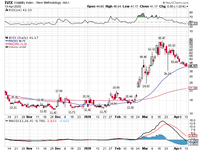 投資家の不安心理を表すVIX(恐怖)指数を眺めると、50日移動平均線に到達していることがわかります。2008年の金融危機の際がそうだったのですが、当時、89.53に達したVIX指数は一度下落に転じるものの、その後50日移動平均線に反発して、再び80の大台を突破しました。