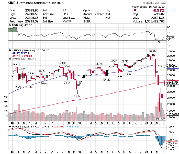 ダウ平均は一時半値戻しをほぼ達成したものの、200週移動平均線がレジスタンス(上値抵抗線)となって抑えられていることがわかります。そのため、ここから二番底を試す公算が大きく、しばらく株安が続くことが予想されます。別の言い方をすれば、優良株に投資する絶好のチャンスが続くということです。