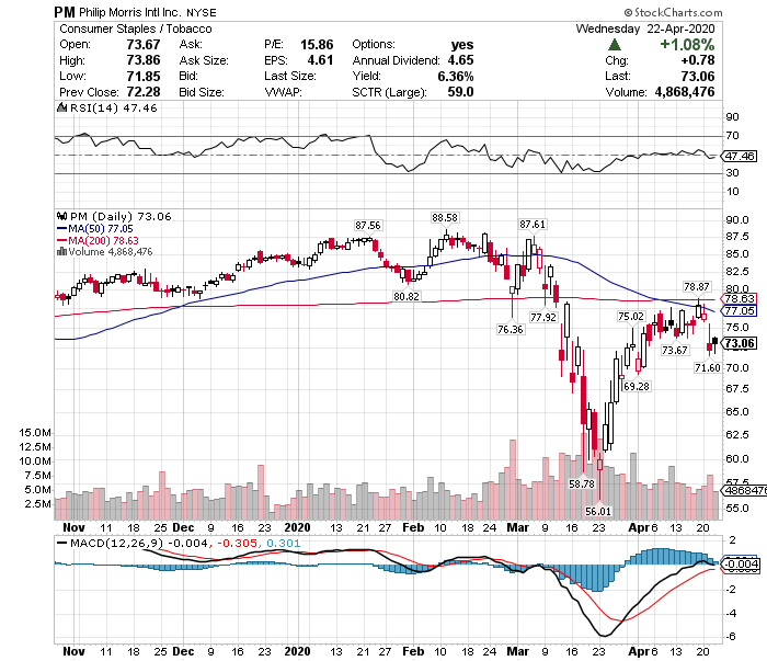 第2四半期のEPS見通しは予想1.35ドルに対して、新ガイダンス1.00~1.10ドルと予想を下回りました。これは、新型コロナウイルスによるパンデミック(世界的大流行)を受けて、免税店での売上高が大幅に減少しているほか、IQOSユーザーの獲得に遅れが生じているためです。