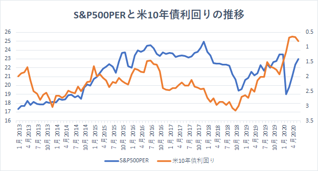 【S&P500PERと米10年債利回りの推移】