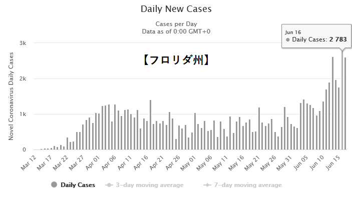 フロリダ州は16日に2783人と、同州で過去最悪を記録しました。