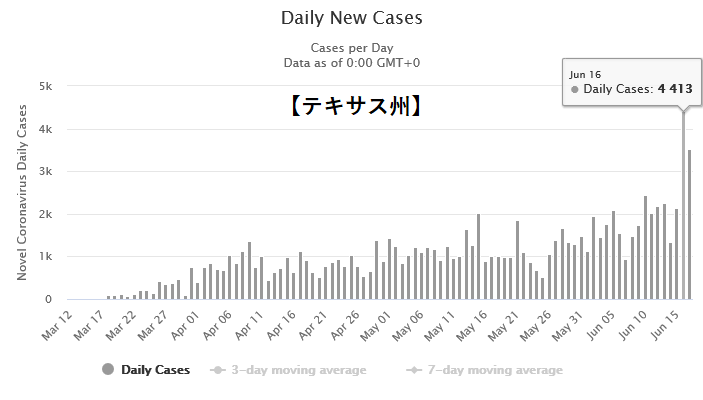 テキサス州も16日に4413人と同州で過去最悪を記録しました。