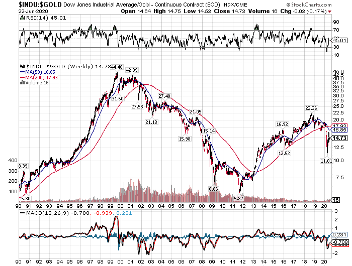 【ダウ・ゴールド・レシオ:1990-2020】