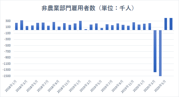 非農業部門雇用者数は予想300万人増に対して、結果480万人増と予想を上回りました。
