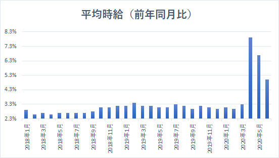 平均時給は予想5.3%に対して、結果5.0%と予想を下回りました。しかし、これは良いことです。なぜなら、これまで平均時給が上昇していた原因は、比較的賃金の低いサービス業で失業者が急増したためだからです。