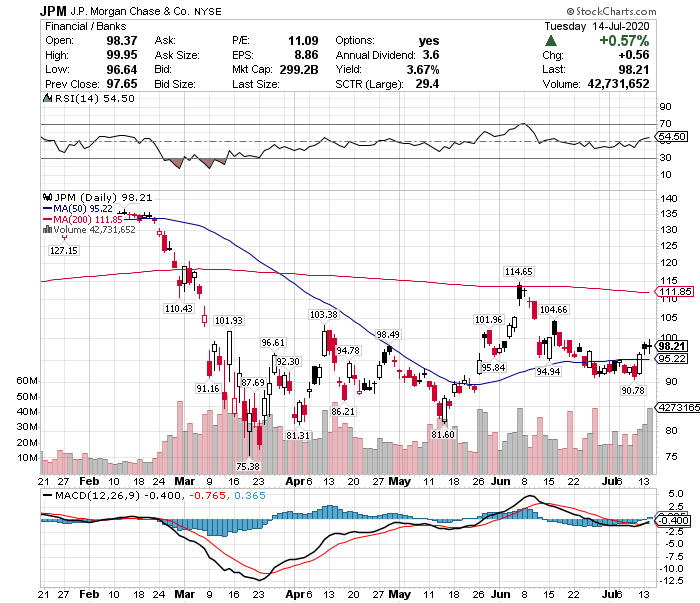 その一方で、投資銀行大手のJPモルガン・チェース(JPM)の四半期決算は良かったです。
