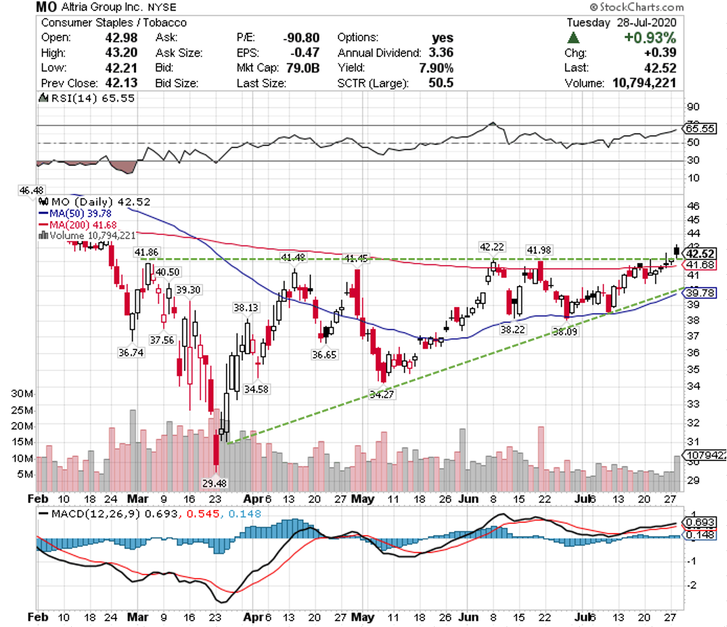 アルトリアの株価は42ドルのレジスタンスを上にブレイクアウトしたため、上昇トレンドが始まることが予想されます。