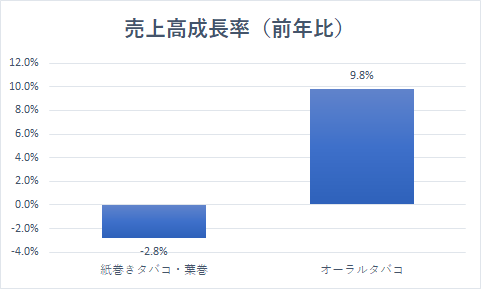 売上高成長率は「紙巻タバコ・葉巻」が前年同期比-2.8%でした。