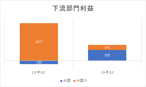 精製・販売を担う下流部門の純利益は9億8000万ドルの黒字でした。これは、原油安が大暴落したことでプラスの影響を受けたためです。
