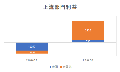原油・天然ガスの探査・生産を担う上流部門の純損失は16億5000万ドルの赤字でした。