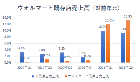 サムズクラブ(会員制スーパー)の既存店売上高は同+13.3%と好調でした。
