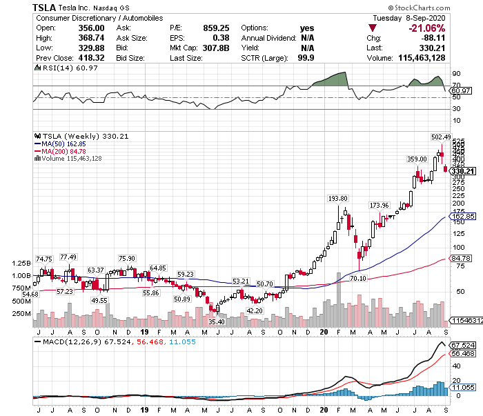 テスラが暴落した主な要因は、S&P500種指数の採用銘柄に選ばれなかったことに加えて、米自動車大手のゼネラル・モーターズ(GM)が電気自動車の新興メーカー、二コラ(NKLA)の株式を11%取得し、業務提携することが発表されたためです。
