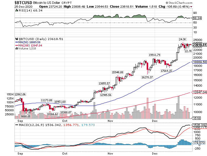 実際、ビットコイン価格は2万3600ドルと堅調に推移しています。目先は買われすぎたことにより調整局面を迎えるかもしれませんが、長期的に見れば上昇トレンドは継続すると思います。