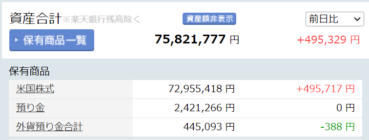 2020年12月末の資産総額は7580万円と、前月の7470万円から約110万円(1.5%)増加しました。