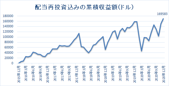 2016年以降の配当再投資込みの累積収益額は16万9583ドル(約1750万円)でした。