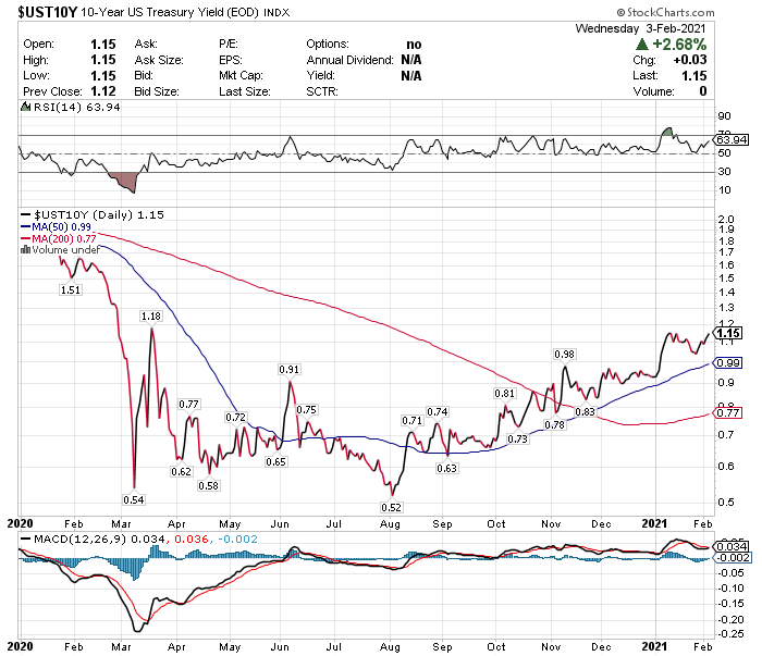 米10年債利回りは1.15%と、2020年3月以来の高水準を記録しています。