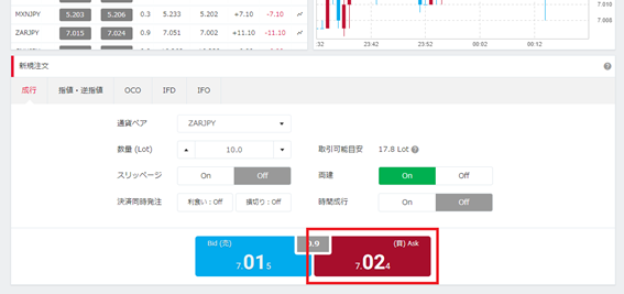 南アフリカランド円の為替レート7.024円×10ロット×証拠金率4%=28,096円