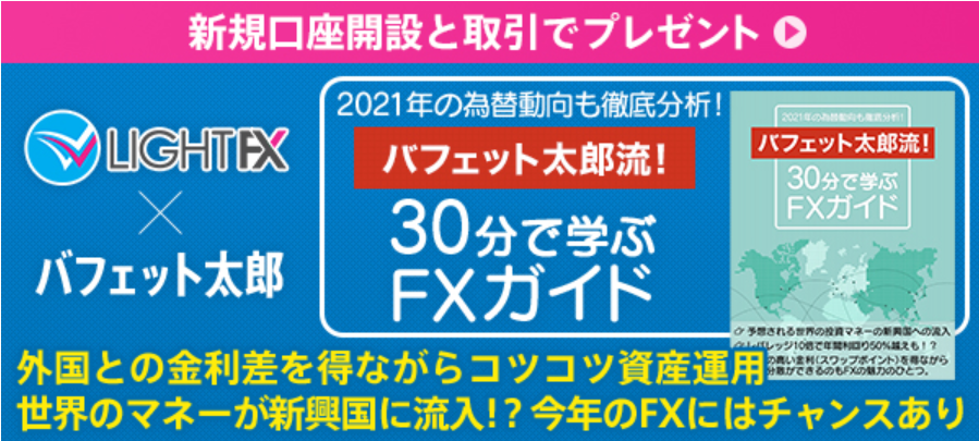 ちなみに、これからFXを始める場合、投資家に人気のトレイダーズ証券が運営する「LIGHT FX」がおすすめです。「LIGHT FX」は操作がしやすいほか、FXの実質的なコストとなるスプレッドが業界最狭水準、さらにスワップポイントは業界最高水準を提供してくれています。
