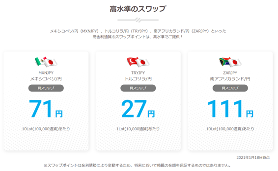 ※スワップポイントは金利情勢により変動するため、将来において掲載の金額を保証するものではありません。