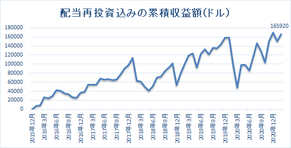 配当再投資込みの累積収益額は16万5920ドル(約1770万円)でした。