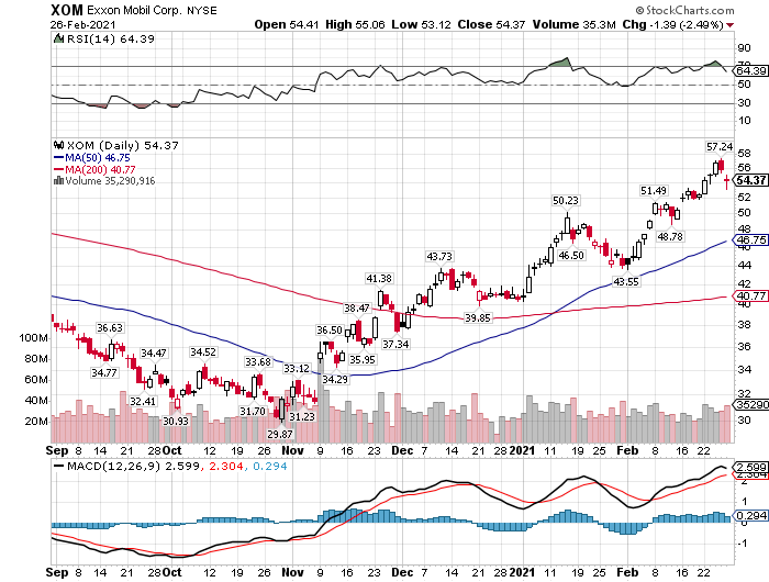 しかし、その後は経済活動再開への期待と、バイデン政権によるシェール開発の規制強化を受けて、原油価格が急騰し、それに伴ってエクソン・モービルの株価も回復しました。