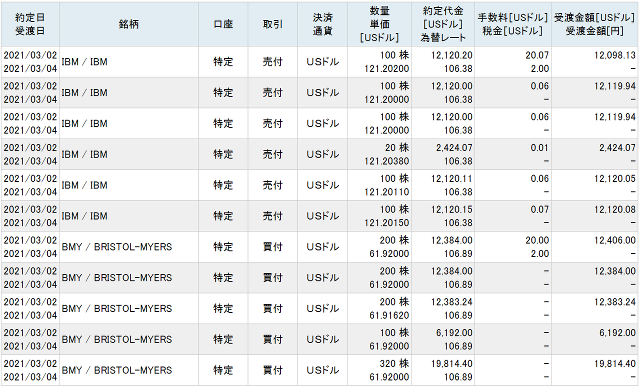 IBM株は保有する520株を121.20ドルで計6万3024ドルで売却し、ブリストル・マイヤーズ・スクイブ株を61.92ドルで1020株の計6万3158ドル分購入しました。