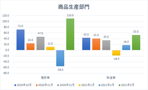商品生産部門は「建設」が11万人増と、前月の5万6000人減から大幅に増加しました。前月は全米を寒波が襲ったことが影響しましたから、今月はその影響の反動が要因だと考えられます。