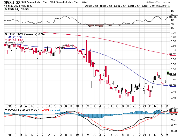 つまり、バリュー株がグロース株をアウトパフォームし始めたということです。