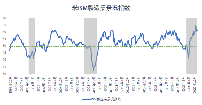 ISM製造業景況指数を見る時のポイントは「トレンド」ではなくて、「位置」に注目することです。