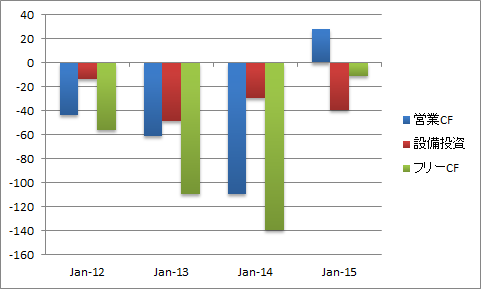 本業の儲けはほとんどなく、設備投資もかかることからフリーCFはマイナスです。