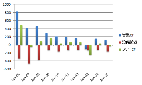 設備投資が本業の儲けを上回っているため、フリーCFがマイナスになっています。