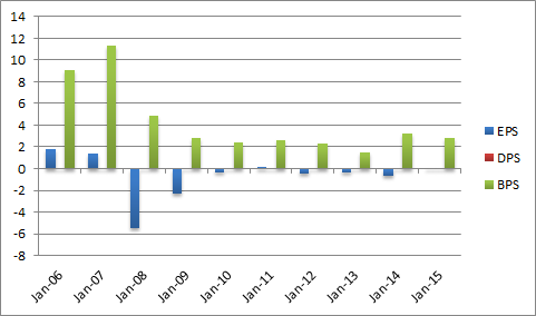 BPS(一株当たりの純資産)の縮小に加えて、利益もまるで出ていません。また、配当もありません。