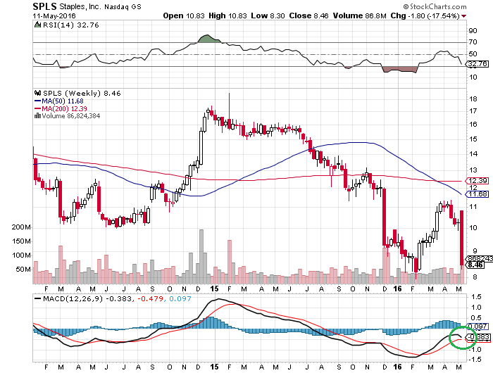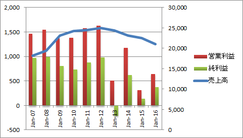 2015年の売上高は前期比10%も落ち込んでいます。減収の主な要因は、アマゾン(AMZN)などネット小売り企業に対して対抗策が示せないことに加えて、事務用品の市場が縮小していることが挙げられます。企業が使う紙やインク、トナーといった事務用品が作業のデジタル化により以前ほど使用されなくなっています。これは短期的なトレンドではなく、長期トレンドであるため、事務用品の市場はますます縮小することが予想されています。