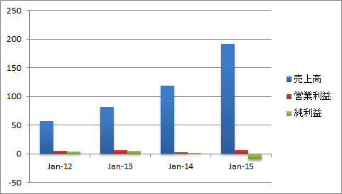 既存店売上高が好調なうえ、新規出店も加速しており、売上高は急拡大しています。一方で店舗網の拡大には費用がかかるため、前期の純利益は赤字でした。