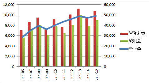 手元資金も豊富で、2011年の手元資金572億3100万ドルから2015年には762億8300万ドルと33%増加しています。
