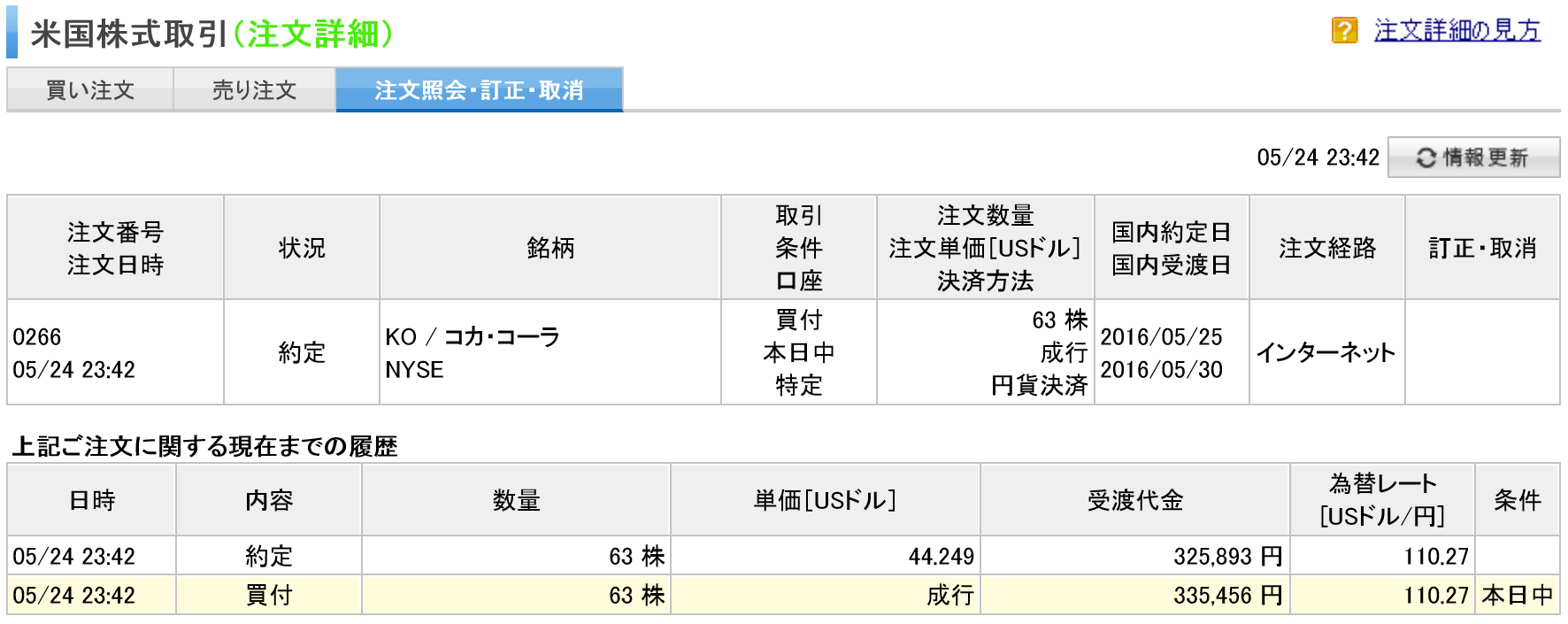 24日、飲料大手のコカ・コーラ(KO)の株式を1株44.25ドルで63株買い増しました。