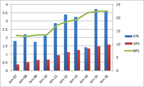 BPS(一株当たりの純資産)は順調に拡大傾向にあります。また、DPS(一株当たりの配当)も連続で増配しています。