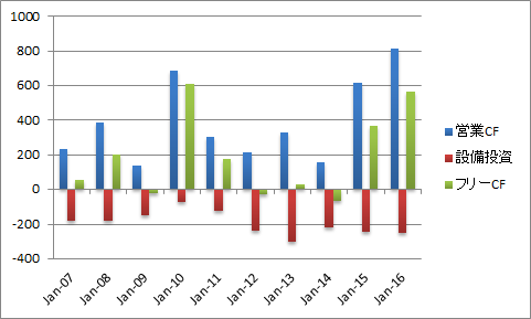 損益計算書ほどキャッシュフロー計算書はキレイではありません。本業の儲けを示す営業CFは乱高下が激しく、安心して長期保有などできません。