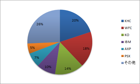 (KHC=クラフトハインツ、WFC=ウェルズ・ファーゴ、KO=コカ・コーラ、IBM=IBM、AXP=アメリカン・エキスプレス、PSX=フィリップス66)