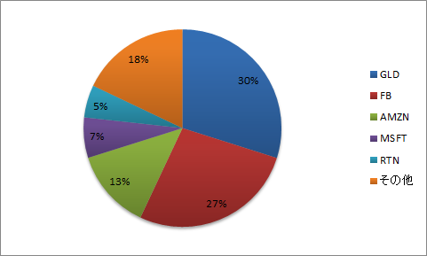 (GLD=SPDRゴールド・シェア、FB=フェイスブック、AMZN=アマゾン、MSFT=マイクロソフト、RTN=レイセオン)